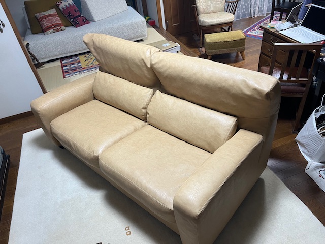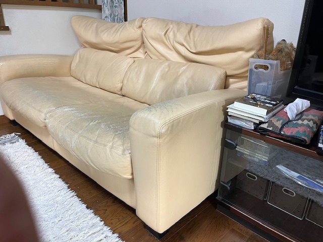 革のハゲは座面と肘置きが顕著でしたので、部分張替えと全体張替えと検討しまして、全体張替えを選んで頂きました。
