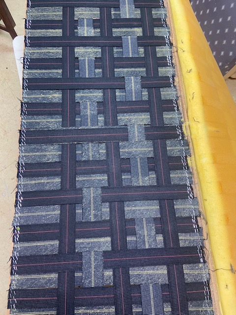座面下はウェービングゴムで想定通りだいぶ伸びてましたので、新しいゴムを入れて補強。