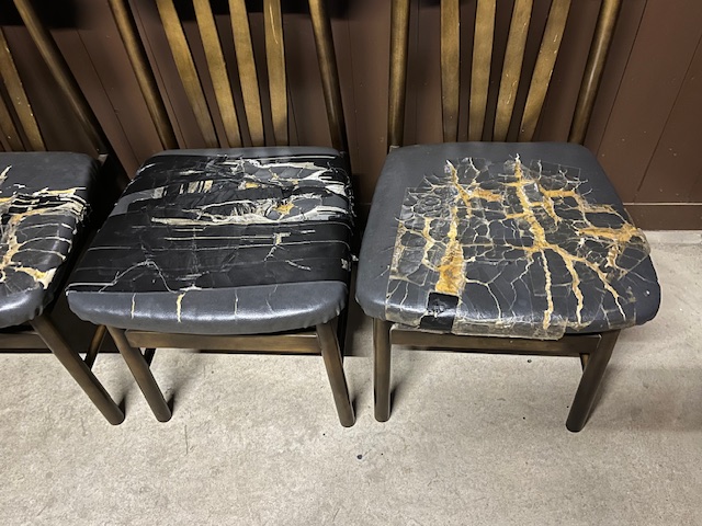 張替え生地は既存と同じ合皮ですが、色味はガラッと気分転換♪