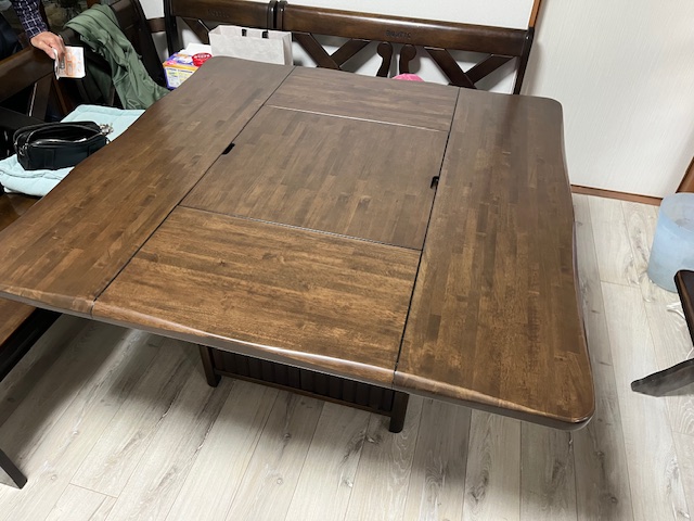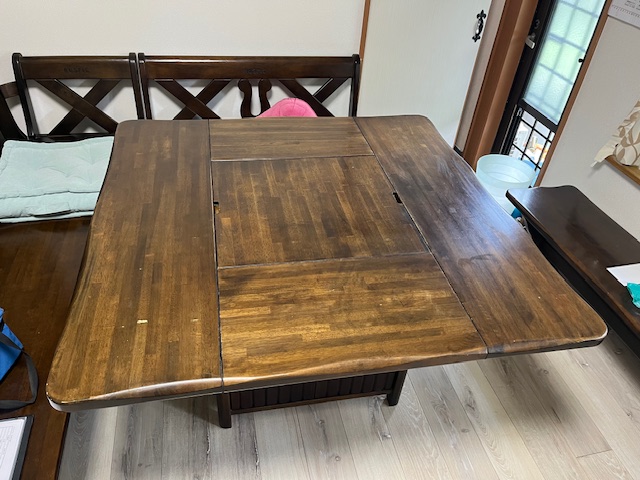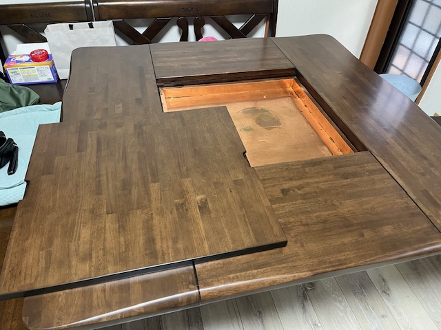 カリモクさんの囲炉裏型テーブルの天板補修相談です。