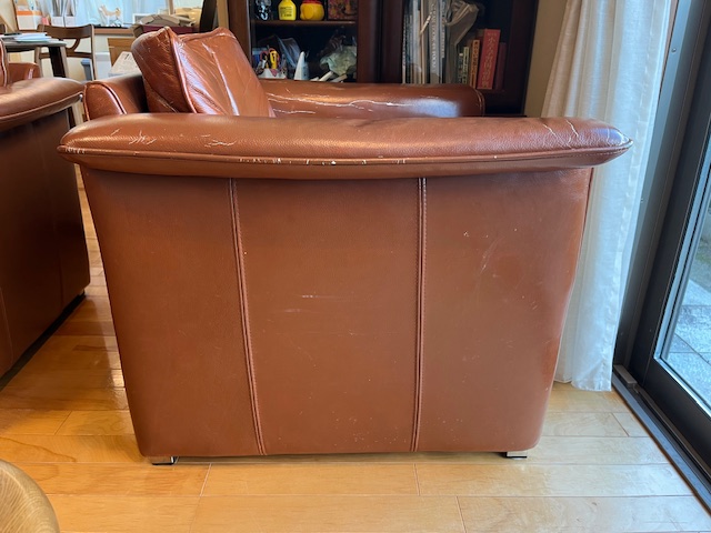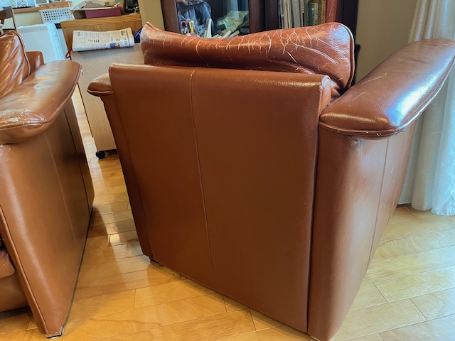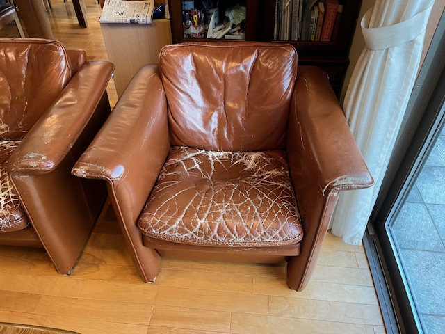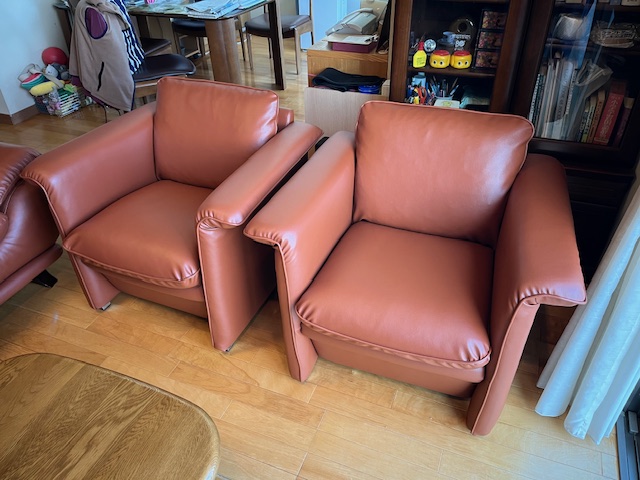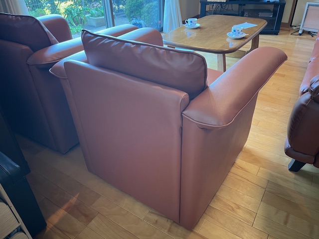 以前、三人掛けソファーの張替えをご依頼いただきましたお客様からのリピート相談で、一人掛けソファー2台の張替え依頼でした。