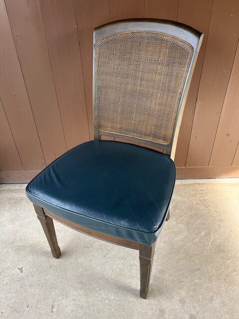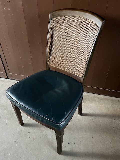 リピーターのお客様で、今回は①籐背もたれ破れの修復、②座面の張替えの内容でご相談でした。